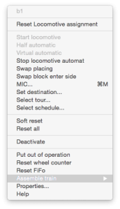 - Ready defined trains may be coupled or uncoupled to / from a loco with "assign train" / "Release train" in the Loco Tab: