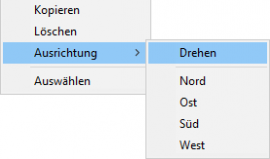 Im Untermenü kann das Drehscheiben-Symbol schrittweise oder gezielt in seiner Ausrichtung gedreht werden.