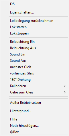 Gleiche Funktionen, wie Start und Stop im Kontextmenü des Lok-Bedienfeldes (s. dort).