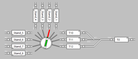 - The Sensor events of the internal Turntable block and the external Bridge block are processed differently. In order to avoid malfunctions, each individual sensor should therefore only either in the tab Turntable: Interface or in the tab Block: Routes of the external Bridge block be assigned.