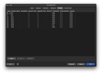 - Each track exit a position sensor in dialog Turntable: Tracks