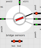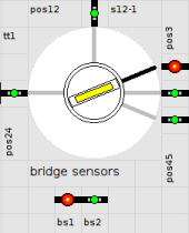 - The Color representation of the bridge (see half right) only occurs with the Bridge sensors 1 and 2 specified in the Turntable: Interface tab.