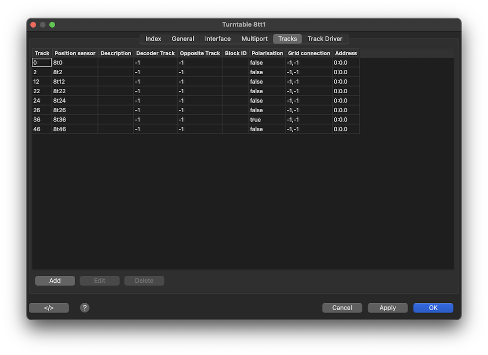 - Maak een blok aan voor de draaischijf: http://wiki.rocrail.net/doku.php?id=block-gen-nl#turntable_id