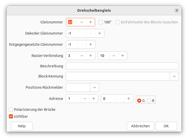 Drehscheiben-Dialog Karteireiter 'Gleise'