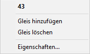 Mit rechtem Mausklick auf einen Gleis-Eintrag öffnet sich ein Kontextmenü: (Beispiel Gleis 43)