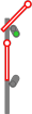 Symbol: Due to the coupling only two aspects are possible. One lamp at the top either green or off (grey), one lamp at the bottom either yellow or red.