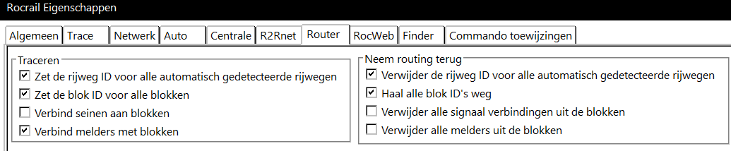 De ingebouwde "Router" configureert de melders met de blokken als de router eigenschappen correct zijn ingesteld.