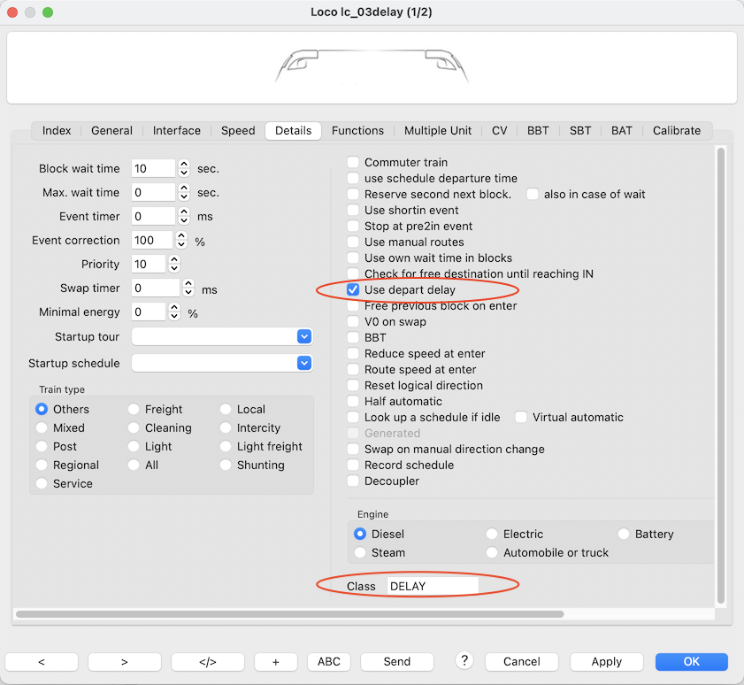 De locomotief zou "Class" = "DELAY" moeten hebben ingesteld (zie Locomotieven - Klasse).