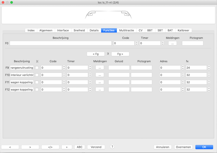 * Het (voor Rocrail) gereserveerde functienummer 32 wordt ingevoerd voor alle functies die niet bij de betreffende loc voorkomen.