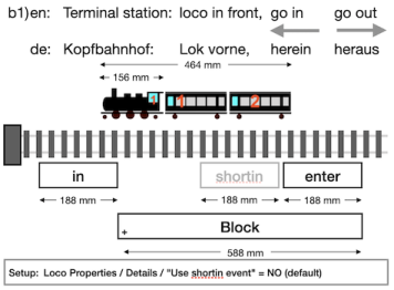 If the locomotive pushes the train into the station, the "SHORTIN" sensor takes over the "IN" event if the locomotive has been configured accordingly!