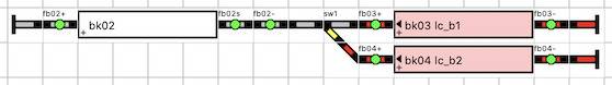 The block "bk02" should always be longer than the longest train (locomotive with wagons) that occupies this block.