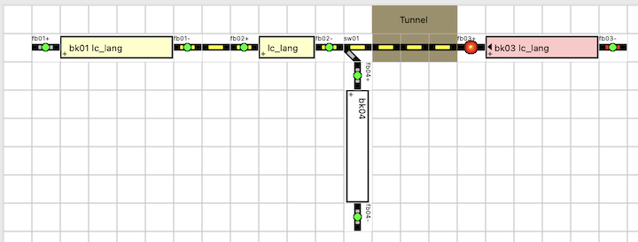| 1 | bk01 | bk03 | ja | langer Zug über kreuzenden Block bk02 | fb02- | [bk01-]-[bk03+] = locked |