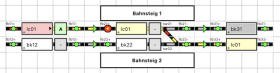 | [bk21-]-[bk32+] | sw01 = Abzweigend sw02 = Abzweigend | Prüfen & Verschliessen Prüfen & Verschliessen |