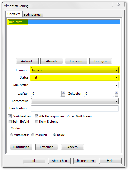 "InitScript" liegt auf der Systemaktion "init" und "StartScript" liegt als Aktion auf allen Tastern.
