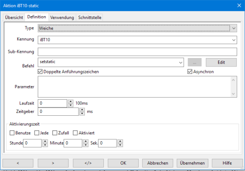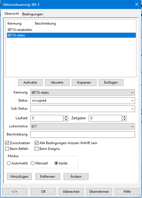 - Aktionen: Für iBT10 sind 2 Aktionen definiert - a) setstatic, b) resetstatic