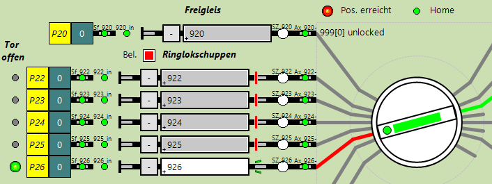 Hinweis: Schritte 2a bis 2c für alle Gleisabgänge wiederholen, die durch Anklicken eines entsprechenden Textfeldes angefahren werden sollen