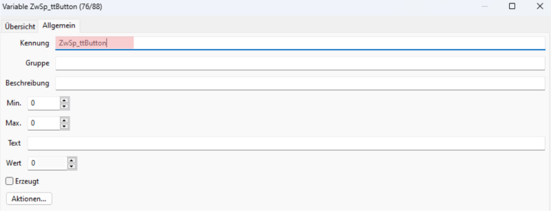 - Diese neu angelegte Variable auswählen und den Tab Allgemein selektieren