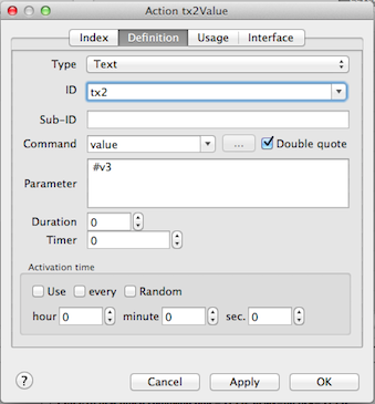 Diese Aktion zeigt den Wert der Variablen v3 im Text-Objekt tx2.