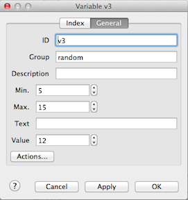 Eine für Variable v3 definierte Aktionssteuerung, die aktiviert wird, wenn v3 den Zufalls-Wert von 12 erhält.