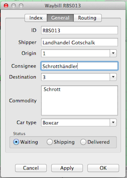 Settings of the status in this dialog has no influence on the assign of the waybill to a car.