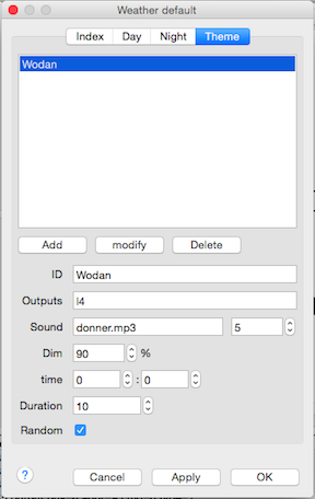 Instead of a sound file an output can be selected which can trigger sound on an external player.